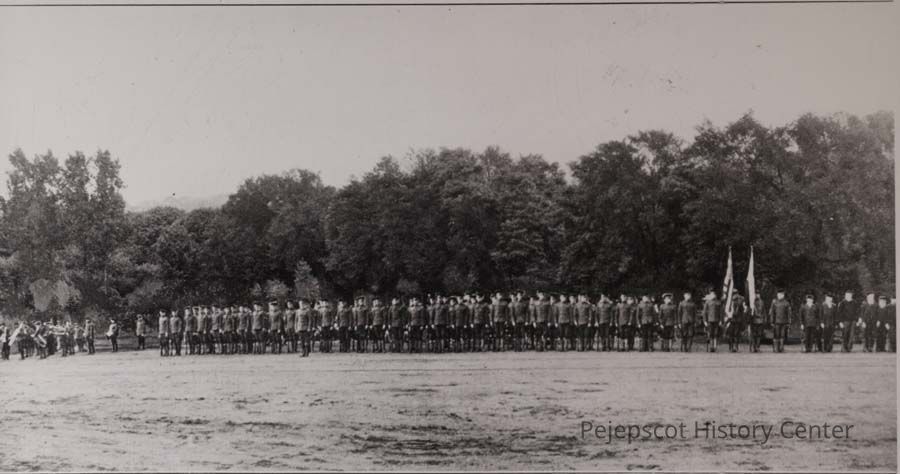 A B/W copy print of "Bowdoin Battalion Drawn Up On Parade", photo reproduced from Bowdoin in the World War by Edgar O. Achorn .b Negative made Photo is undated.