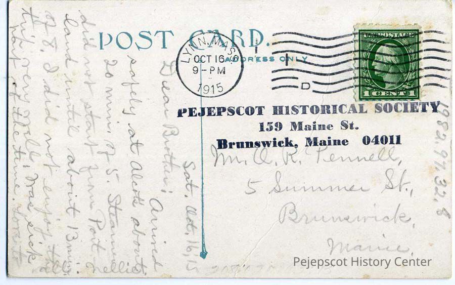Dated & postmarked Sat., Oct. 16, 1915, Lynn, Mass.