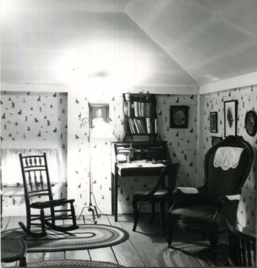 B/W photo of guest room in the Bowdoin College president's house, 85 Federal Street, Brunswick, ME, during the presidency of Kenneth C.M. Sills (1918-1952). No date.