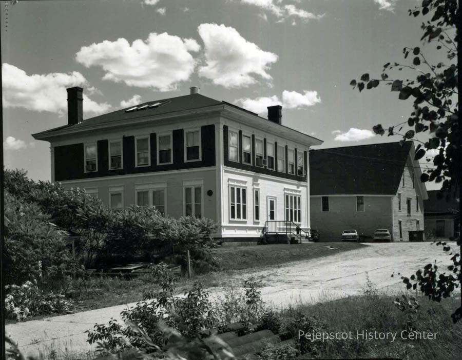 B/W photo of Bowdoin Mill, building 7, across Old Main Street, Topsham, ME. No date.