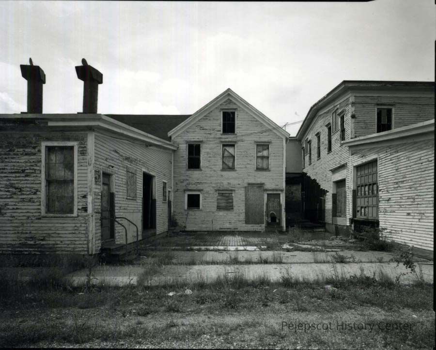 B/W photo of the Bowdoin Mill, Old Main Street, Topsham, ME, buildings 2, 4, and 6. No date.