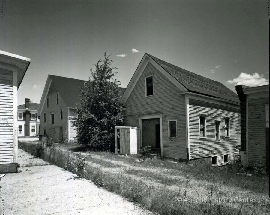 B/W photo of Bowdoin Mill, Old Main Street, Topsham, ME, buildings 8 & 9. No date.