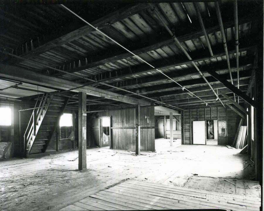 B/W photo of the Bowdoin Mill, Topsham, ME, interior of building 1, second floor. No date.