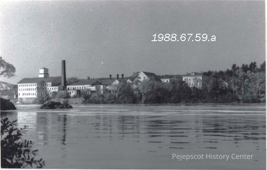 Looking northeast across the Androscoggin River at Great Island and the Bowdoin Mill.