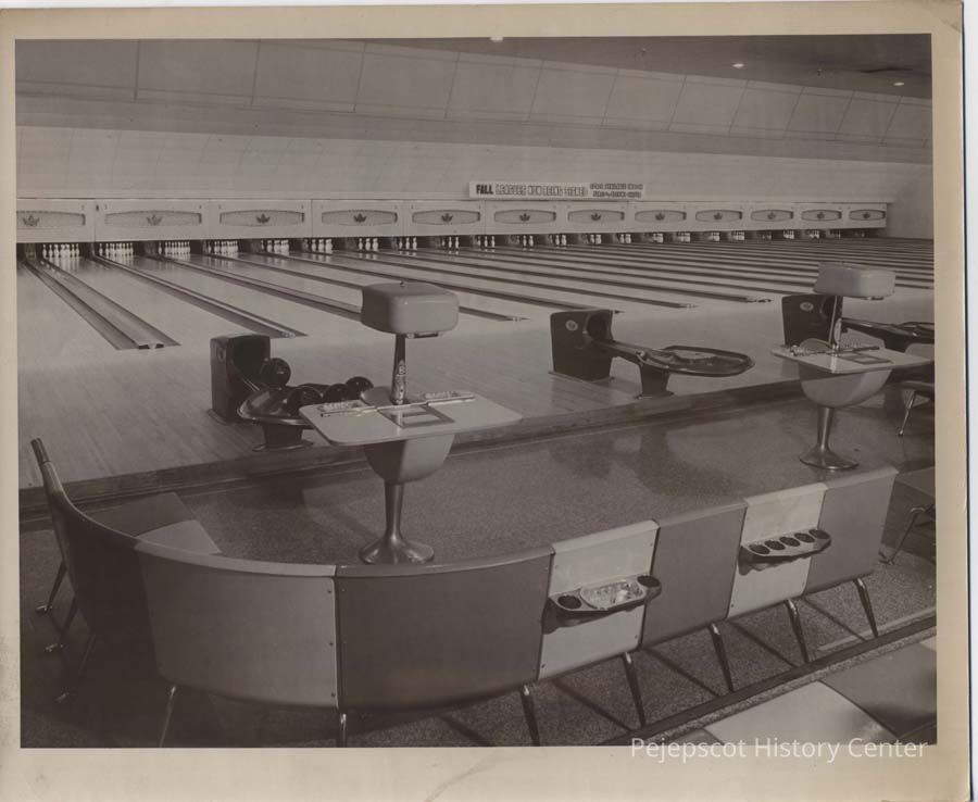 Photo of interior of bowling alley on Bath Road at Cook's Corner, Brunswick.