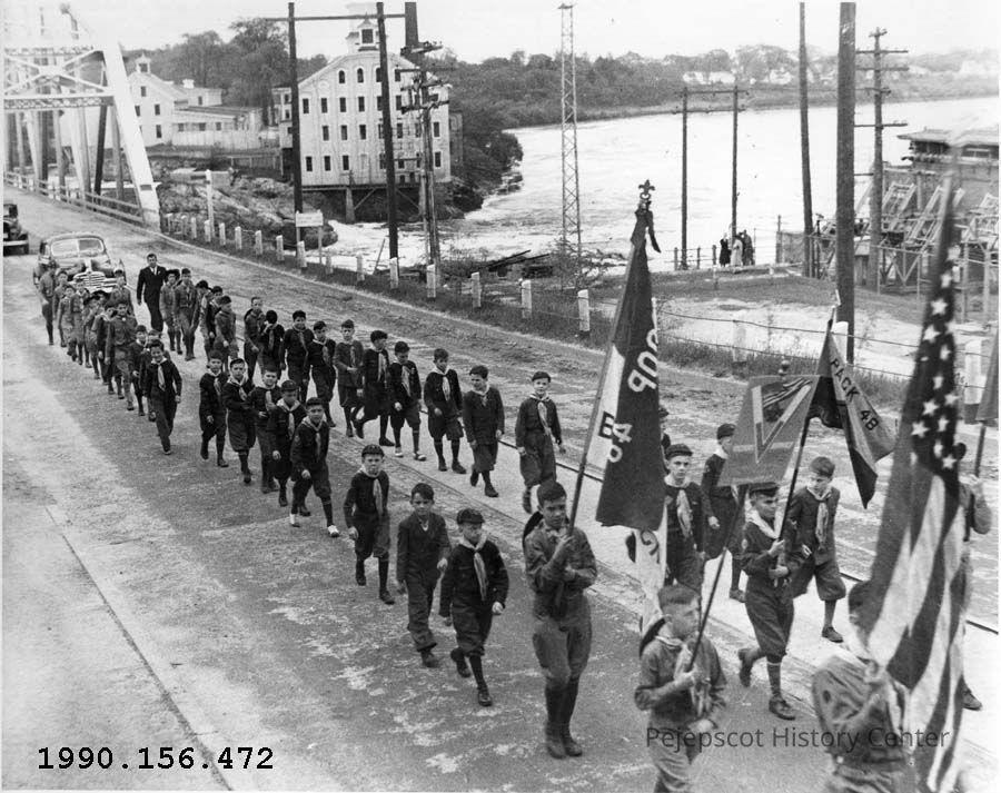 Parades, Parades - Brunswick, Bicentennials - Brunswick, Bowdoin Mill, Bridges - Frank J. Wood Bridge, Frank J. Wood Bridge, Boy Scouts of America - Brunswick