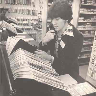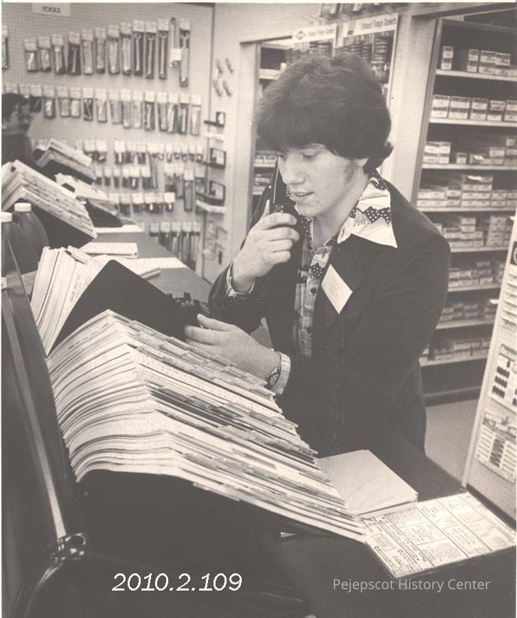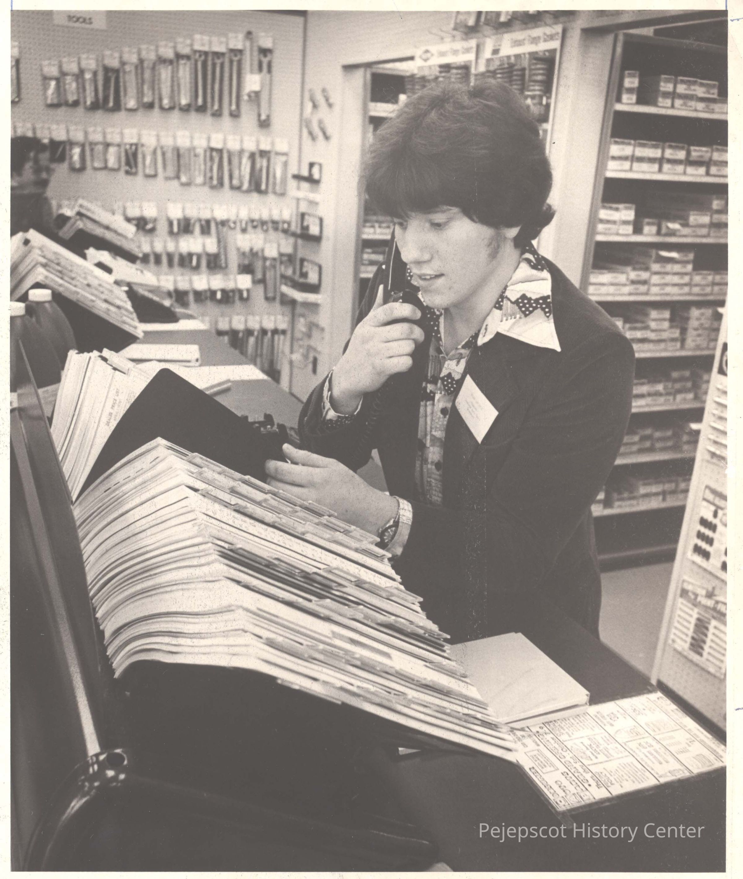 A B/W photograph of Brian LaPlante, Manager of Consumer Auto Parts store which opened on the Bath Road. Photo published 10/11/1976. Undated