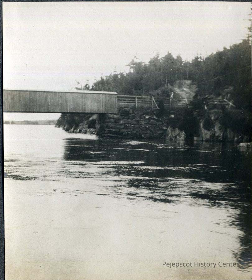 A photo of the bridge between Orr's and Great Island. It is marked, "To Great Island." Undated