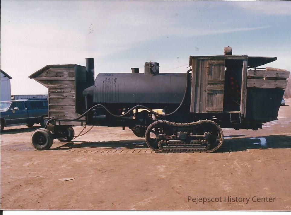 A color photograph of a broadside view of the Lombard Log Hauler. Writing on the back reads,