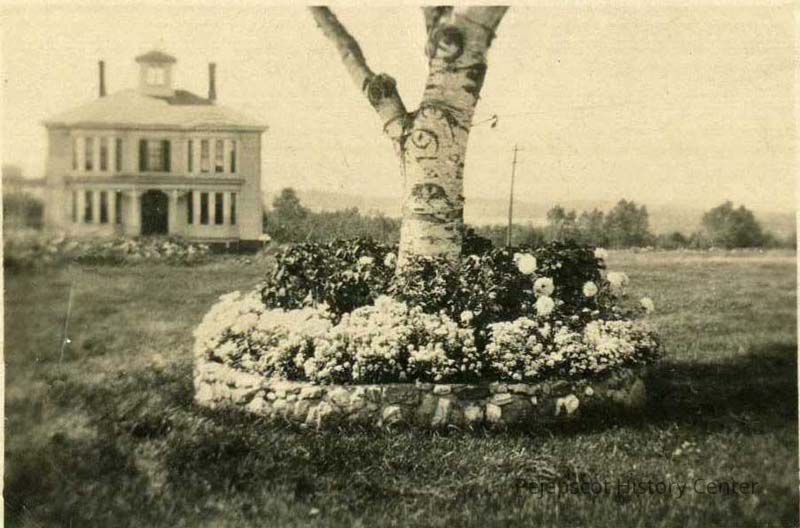 A B/W photographic view of the flower garden at Broadview House. It was built in 1879 (1884?) It was sold in the 1890's as a summer residence.