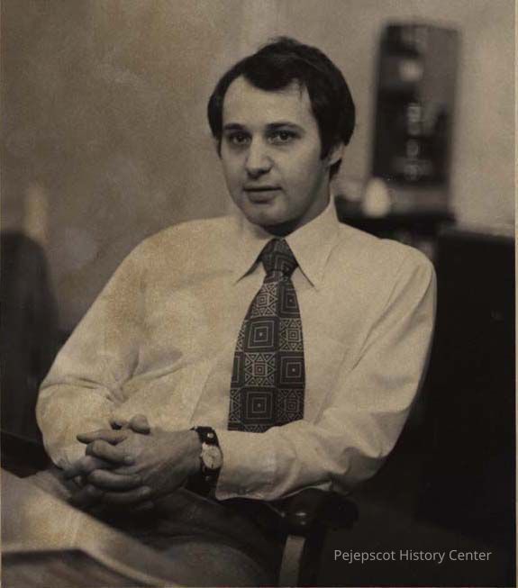 A black and white photograph of Bruce Brawn of Bath was published in The Times Record in Brunswick, Maine, on 3/29/1977, along with an article about him being hired by the Chamber of Commerce to work on a year-long marketing and business development study of Sagadahoc County.