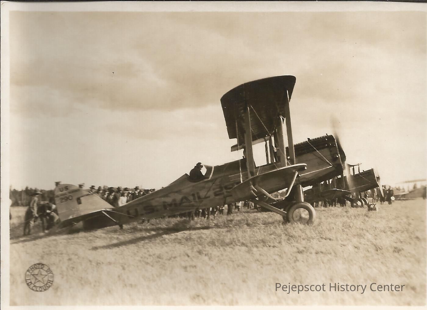 A B/W photo of some aircraft at the new Brunswick Airfield. There is a crowd looking on. Undated