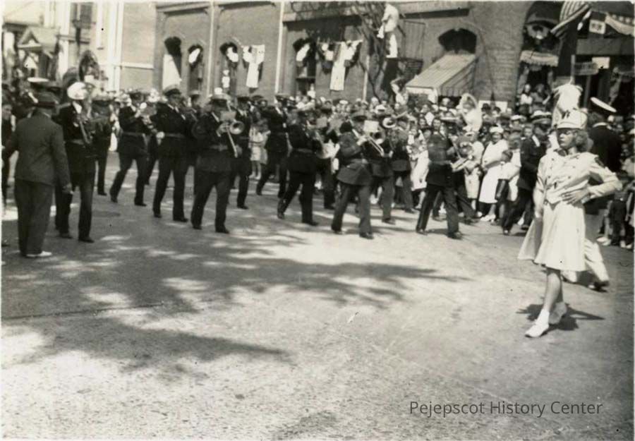 A B/W photograph of the Bi-Centennial Parade, Brunswick, Maine. 7/4/1939.