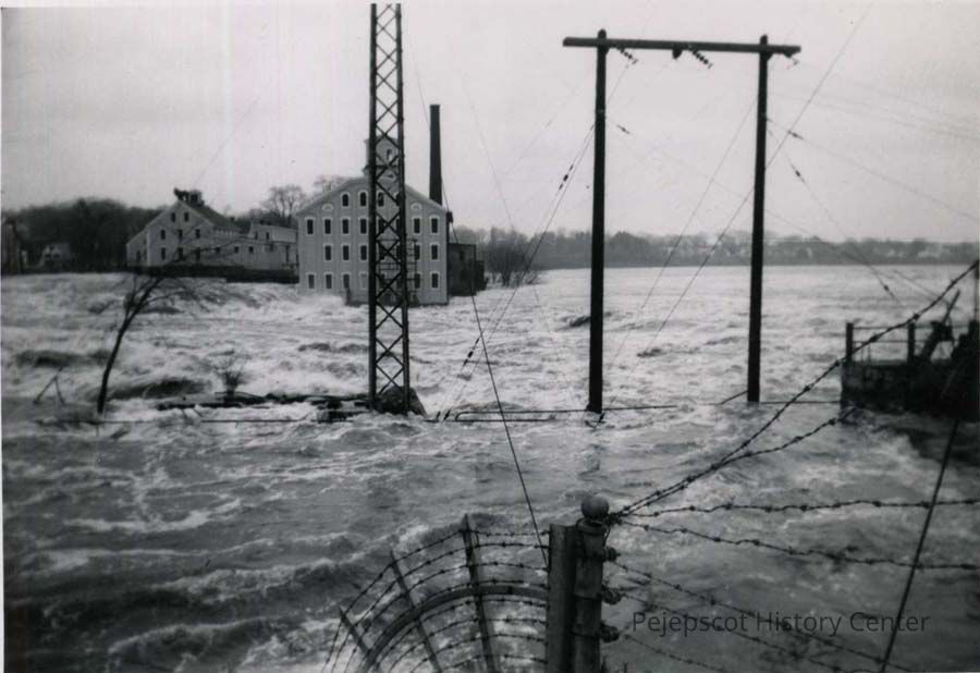 Floods, Floods - 1950's, Floods - Brunswick, Androscoggin River, Bowdoin Mill, Power Station, CMPCo generating station