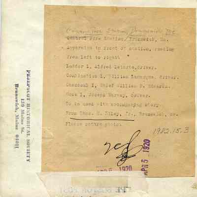 Fire Chief - Brunswick, Fire stations - Brunswick, Firemen, Fire Trucks - Chemical No. 1, Fire Trucks - Combination No. 1, Fire Department - Brunswick, Fire engines - Brunswick, BFD