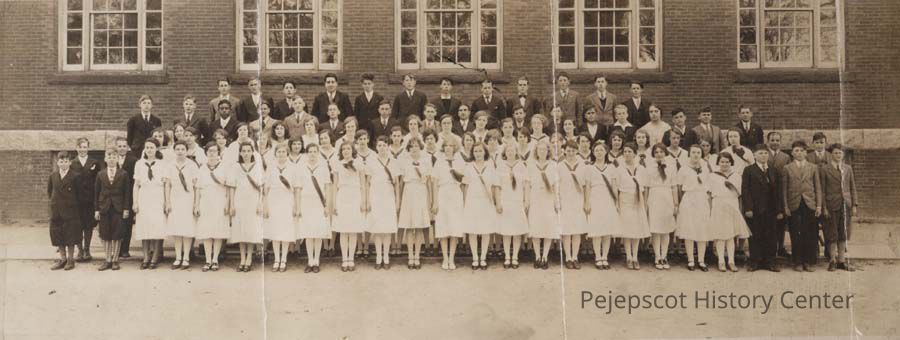 Second Row: Fred Crowley, Robert Pletts, Madelynne Roode, Helen Grant, Lorna Miller, Margaret OPalmer, Helen Bragdon, Dorothy Hackett, Dorothy Sparks, Marjorie Barrows, Shirley Pulsifer, Myrtle Alexander, Dorothy Chase, Frances Lee, Ralph Chesley, Joseph Haile.
