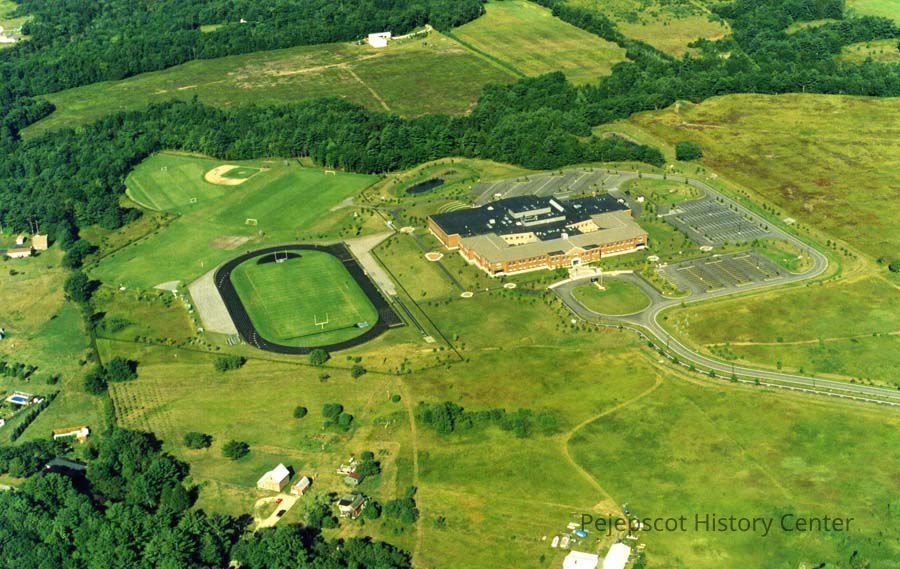 Color aerial photo of Brunswick High School, Maquoit Road, Brunswick, ME. No date.