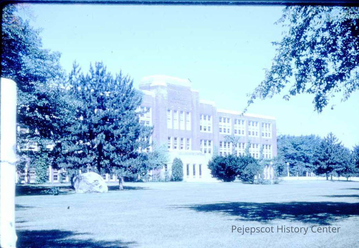 A color 35 mm slide of Brunswick High School. 1966