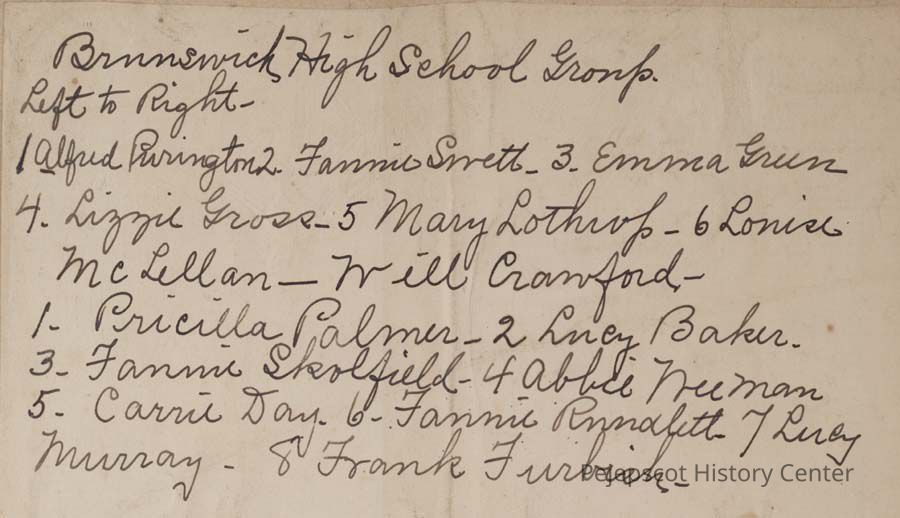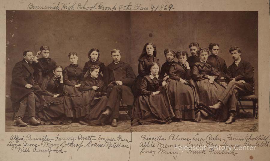Brunswick High School, Brunswick, ME class. Dated 1869.