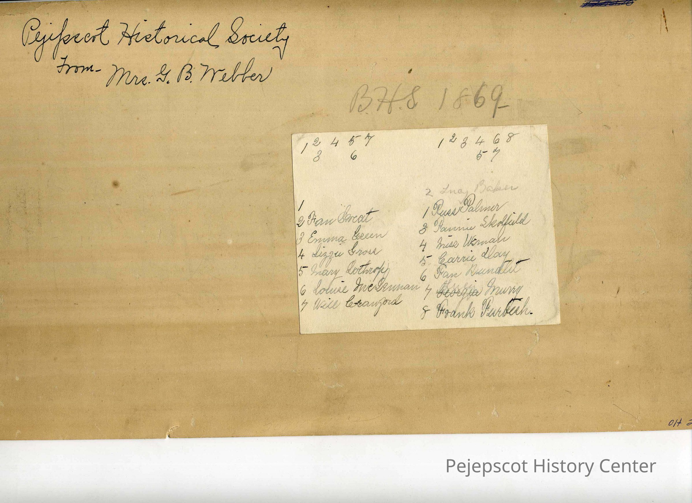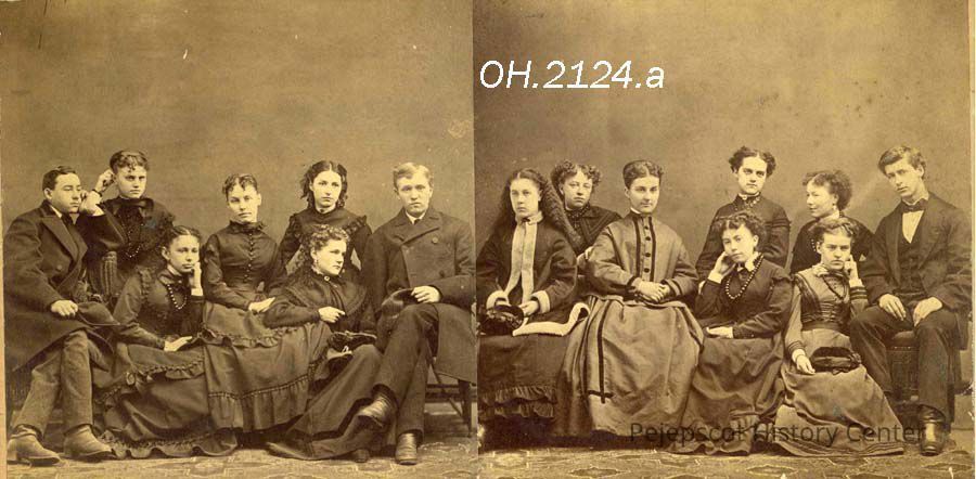 A B/W photograph of Brunswick High School Class, Brunswick, ME. Dated 1869.