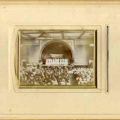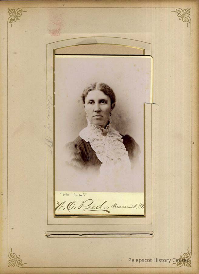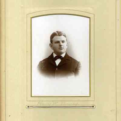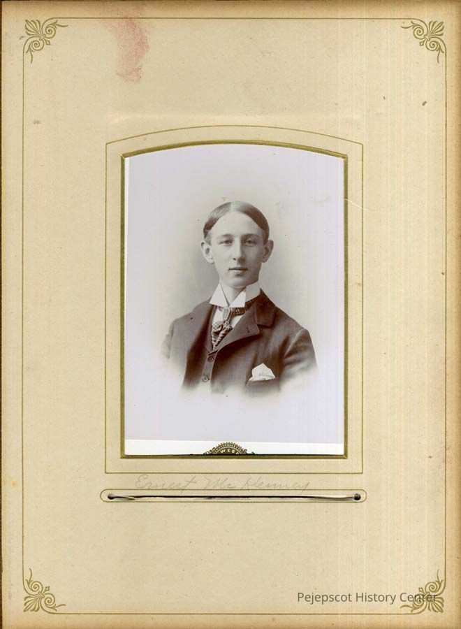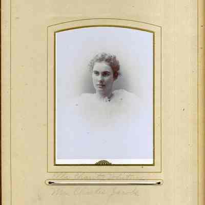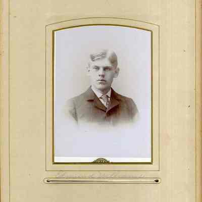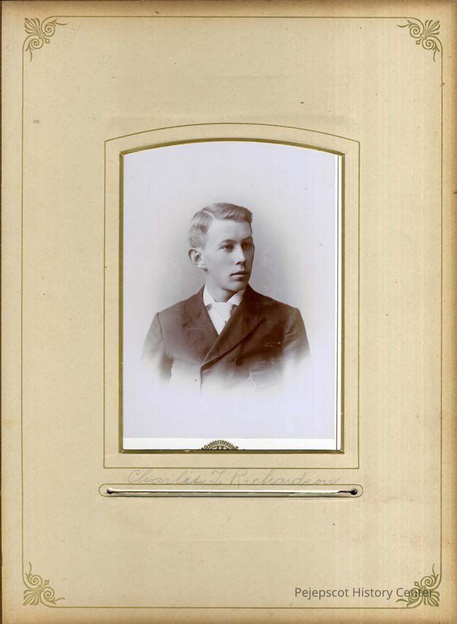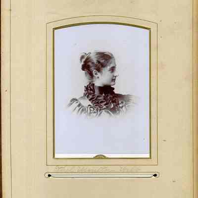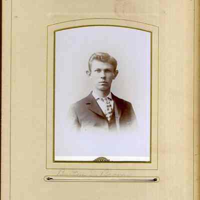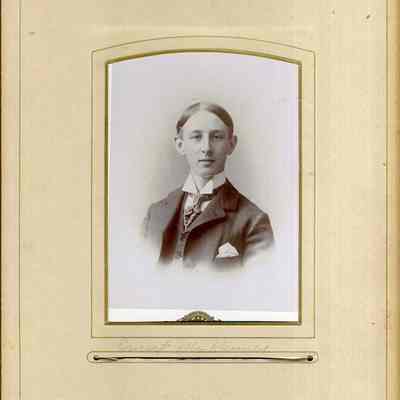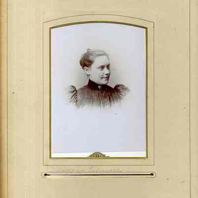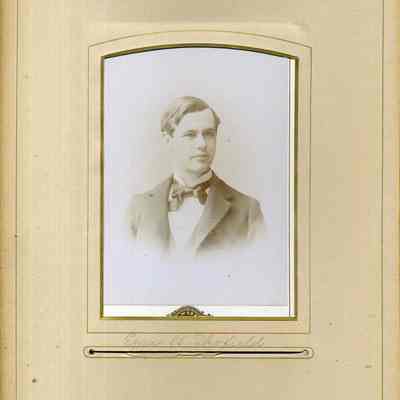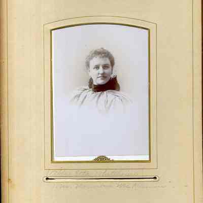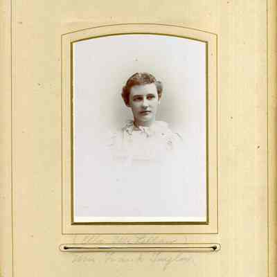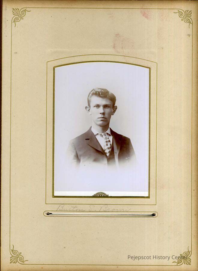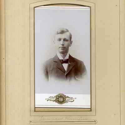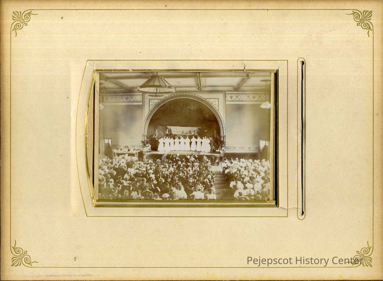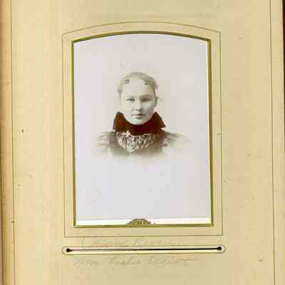 Brunswick High School class of 1895, a red velvet covered photo album of graduation pictures with metallic crest on cover, assembled by Blanche Blake, containing cabinet card photos of the members the class including the teacher. Album also includes photos of the graduation ceremony and several unidentified sitters, infants and older adults (may be images of the album's owner when young and of her family). Blake's photograph is not included in the album but can be found with the rest of the PHS photograph collection under 2001.84.2. 1895.