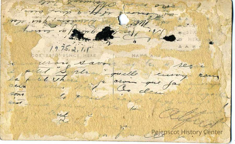 A black and white photograph of the Brunswick High School fire on Federal Street, Brunswick, ME. The back of the photo has an illegible handwritten note.