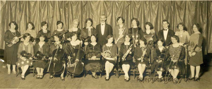 B/W photograph of Brunswick High School music teachers holding their instruments.