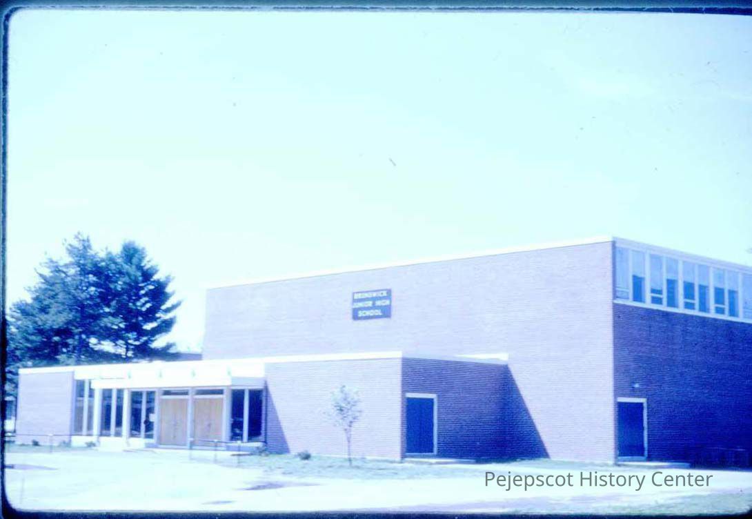 A color 35 mm slide of Brunswick Junior High School. 1966