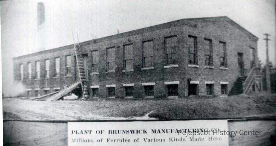 B/W photo of the Brunswick Manufacturing Co. plant on Stanwood Street, Brunswick, ME. No date.Collection