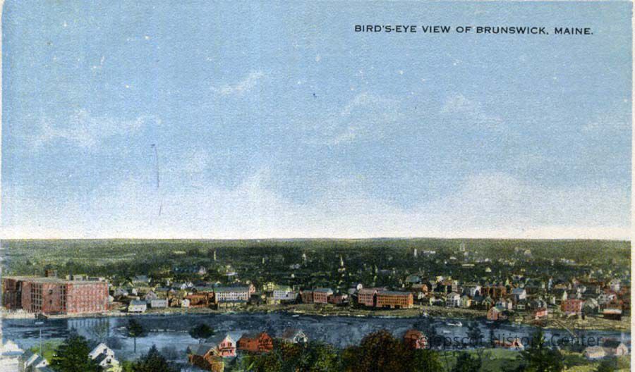Color postcard aerial shot of Brunswick ME Postmarked 8/14/1917.