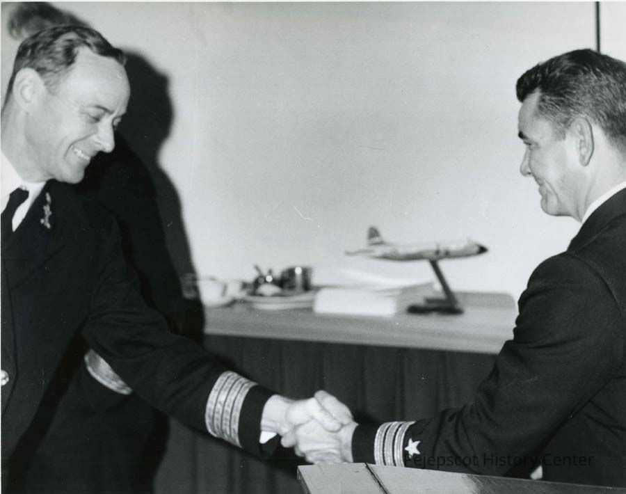 B/W photograph of unknown people at Brunswick Naval Air Station. 1967
