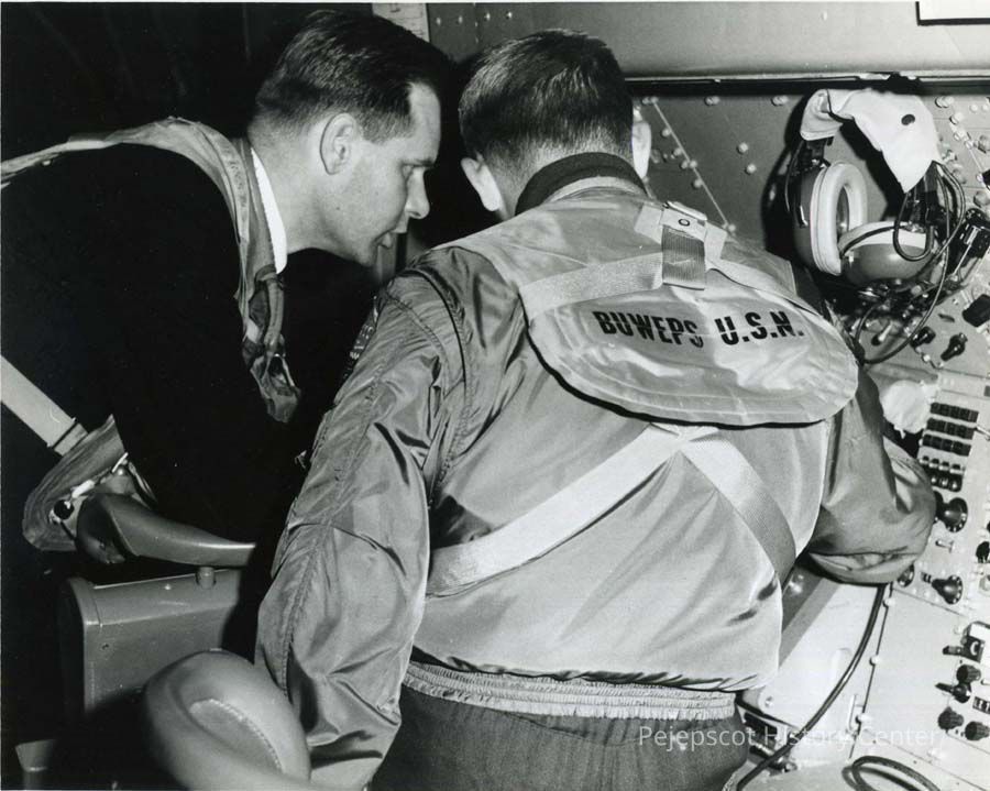 B/W photo of unknown people at Brunswick Naval Air Station. 1967.