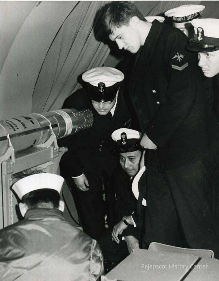 B/W photo of a group of Navy men at Brunswick Naval Air Station. 1967.