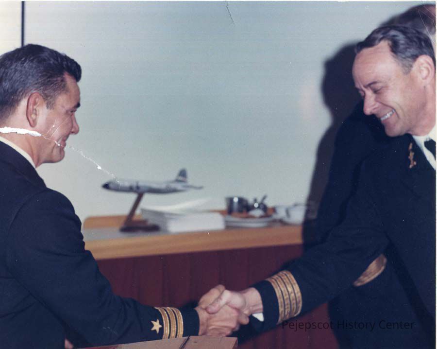 Color photo of unknown Navy officers at Brunswick Naval Air Station. 1967.