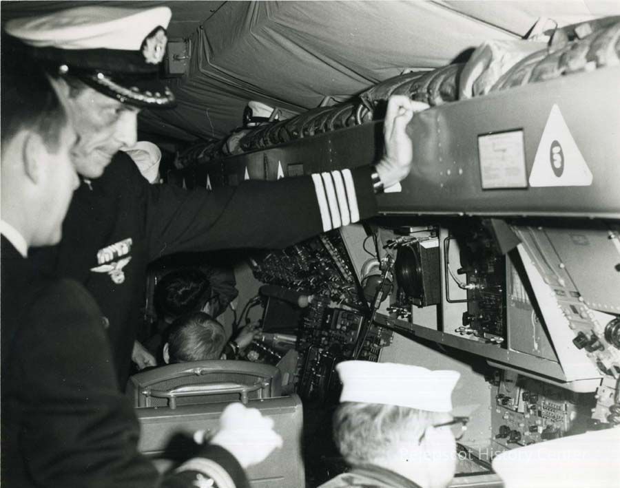 B/W photo of unknown people at Brunswick Naval Air Station. 1967.
