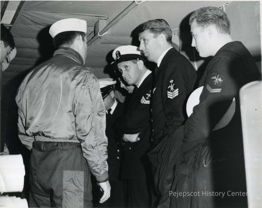 B/W photo of unknown people at Brunswick Naval Air Station. 1967.