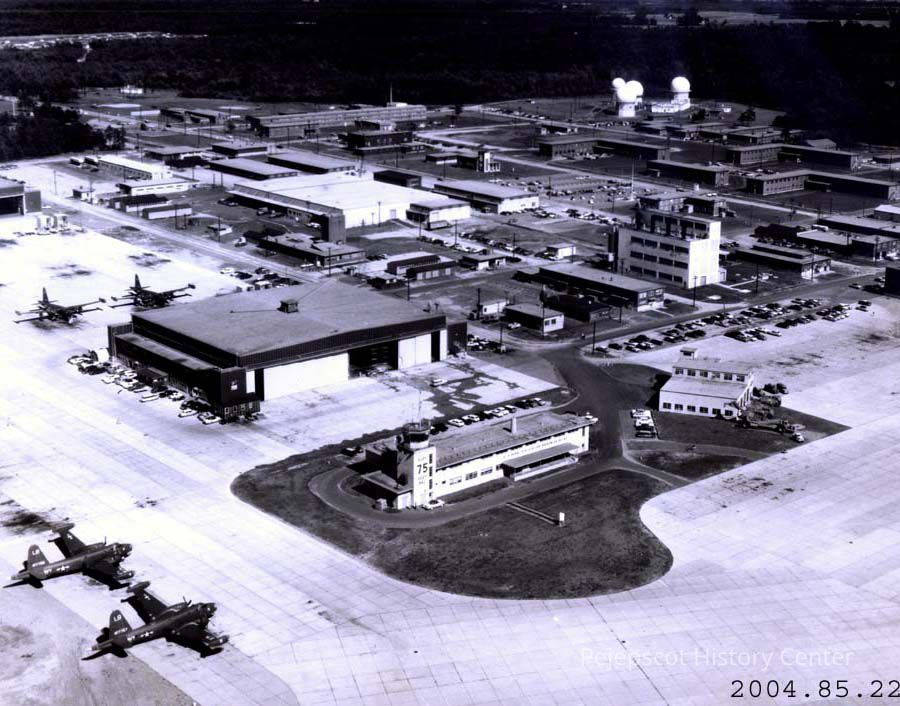 A B/W aerial photograph of Brunswick Naval Air Station, looking south east. Photo taken 08/06/1958