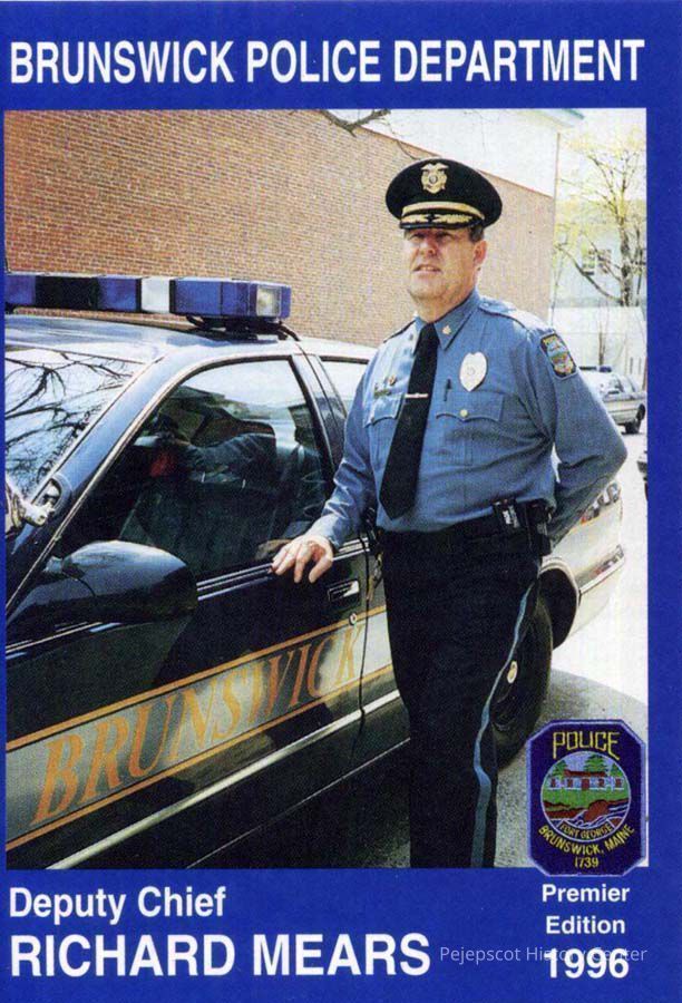 Color souvenir card of Deputy Chief Richard Mears, Brunswick, ME, Police Department. On the back is a brief biography and safety message. 1996.