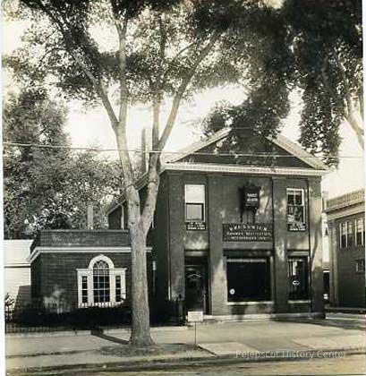 A B/W photograph of the Brunswick Savings Institution building on the corner of Maine and Bank Streets. 75-83 Maine St. Undated