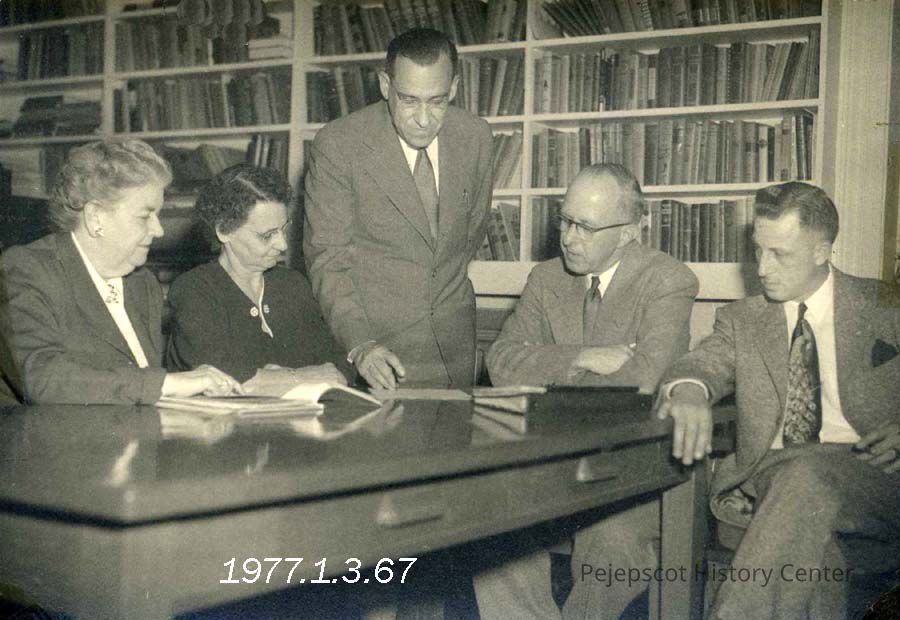 A B/W photograph of the Brunswick School Board. They are Isabella Congdon, Susie B. Sylvester, Dr. Maurice Dionne, Prof. Albert Thayer and William Clemons. UndatedCollection