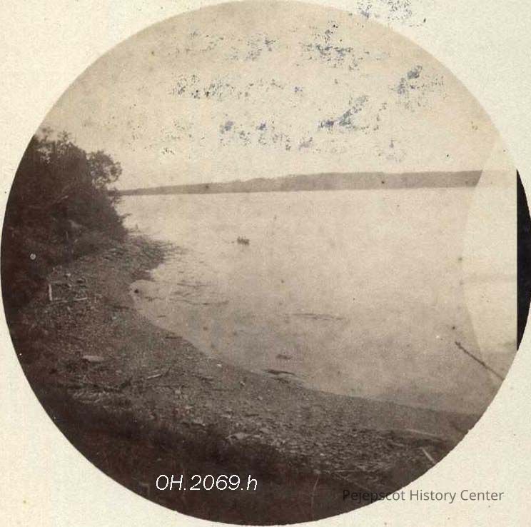 A B/W photograph of the Brunswick, ME shoreline. Dated 1889.