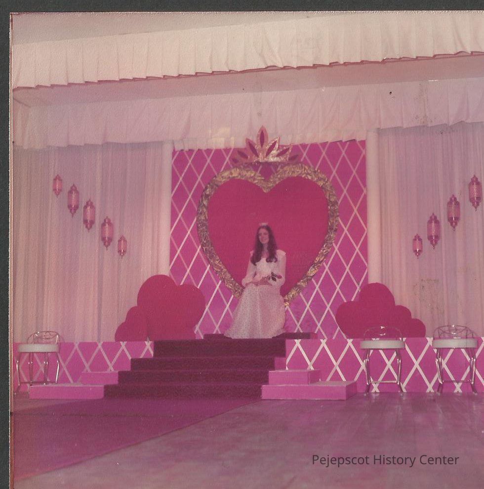 Brunswick Teen Queen 1973-74 Barbara Aldridge sitting in the coronation set as the curtains open for second half of pageant while Joline is singing.Collection