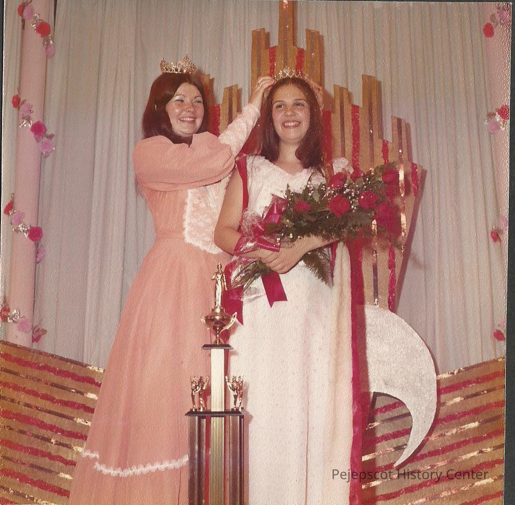 Brunswick Teen Queen 1975-76 Phyllis Gaudreau with Debbie Jellison Teen Queen 1974-75 and Pageant Director Gene Gagne.Collection