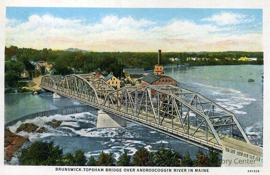 Bridges, Bridges - Brunswick-Topsham Bridge, Bridges - Frank J. Wood Bridge, Bowdoin Paper Mill, Bowdoin Paper Manufacturing Co., Androscoggin River