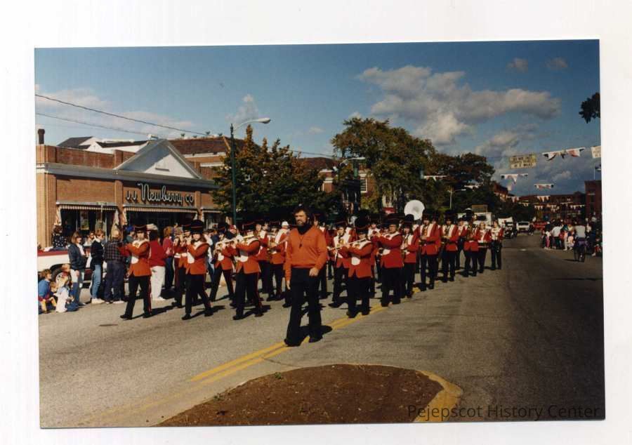 A color photo of Brunswick's 250th anniversary parade. The photo shows a closer view of the Brunswick High School Marching Band. 10/07/1989