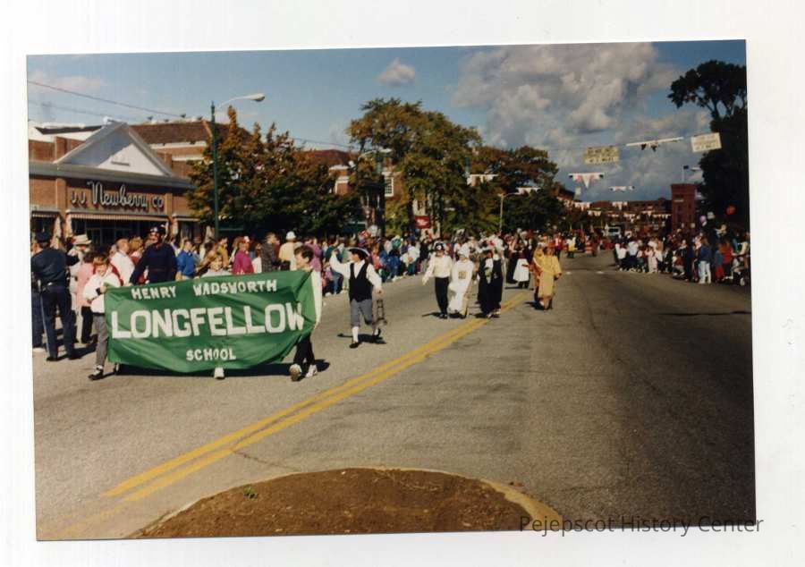 250 Years a Town, 250th Anniversary - Brunswick, 250th Anniversary Parade, Elementary schools, Elementary schools - Brunswick, Longfellow Elementary School, Maine Street, Maine Street - Brunswick, Maine Street, Brunswick, Parade, Parades, Parades - Brunswick, Schools - Longfellow, Streets - Maine, Streets - Maine Street