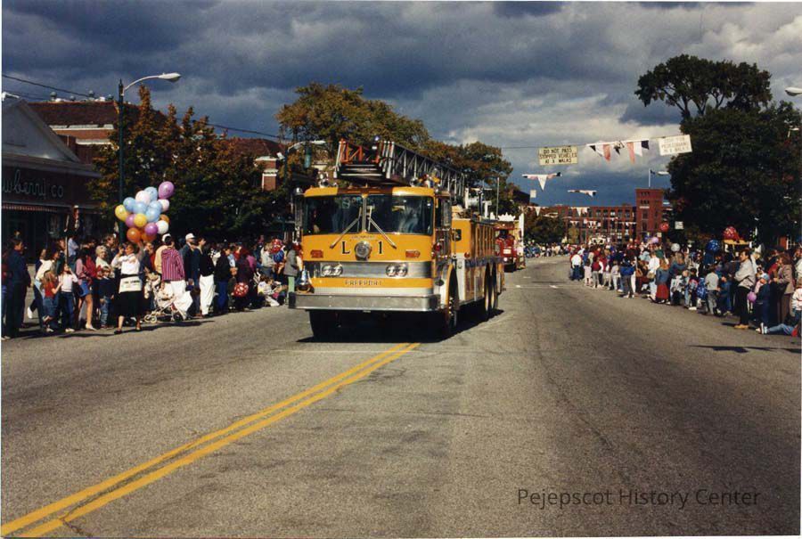 250 Years a Town, 250th Anniversary - Brunswick, 250th Anniversary Parade, Maine Street - Brunswick, Parades, Parades - Brunswick, Streets - Maine, J J Newberry Co., Yellow fire truck