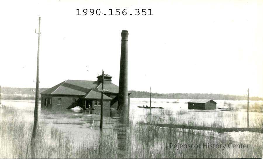 A B/W photograph of Brunswick's Pumping Station on Jordan Avenue during the 1936 flood.
