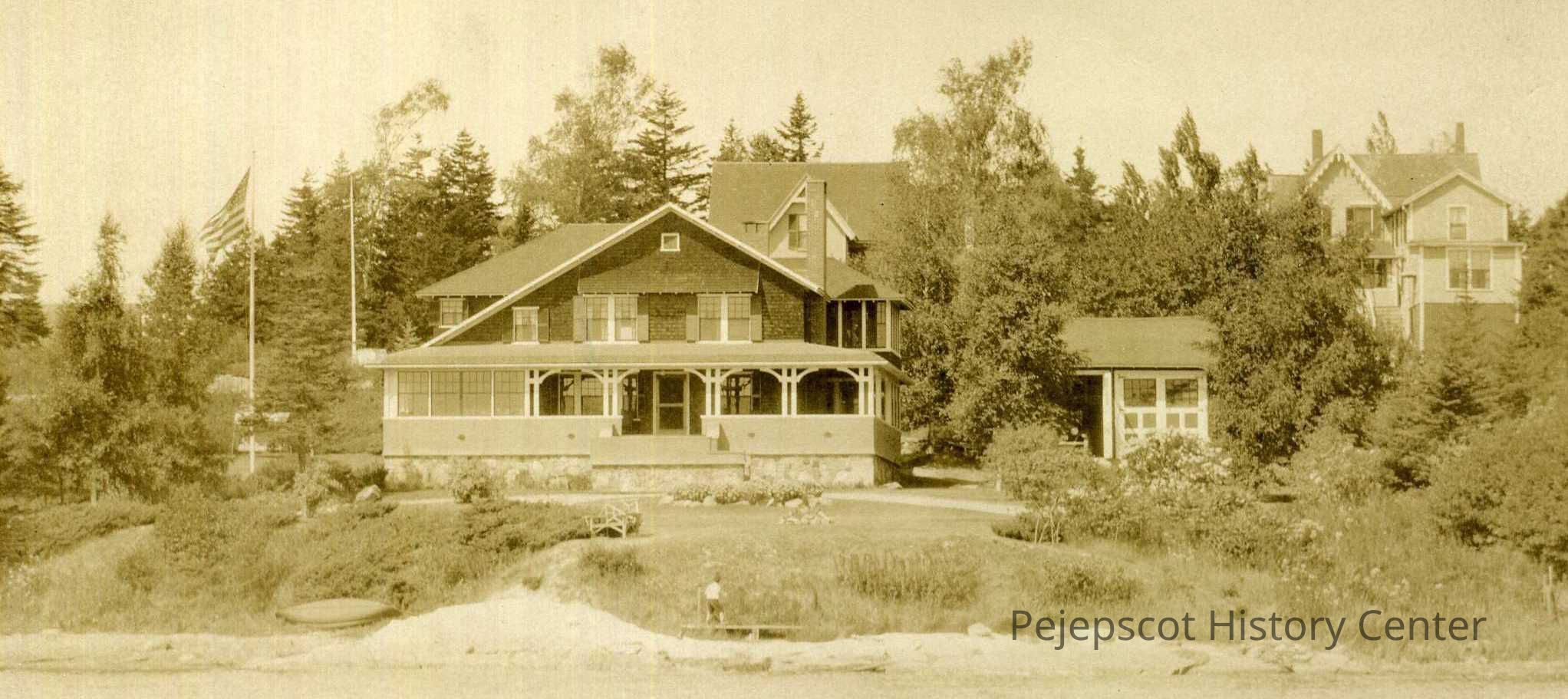 B/W postcard of E. Files Bryant's cottage on Mere Point, Brunswick, ME. 1925.Lexicon