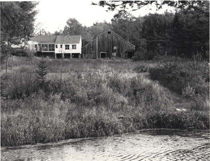 A B/W photograph of a building with an old barn in Brunswick. 10/1982